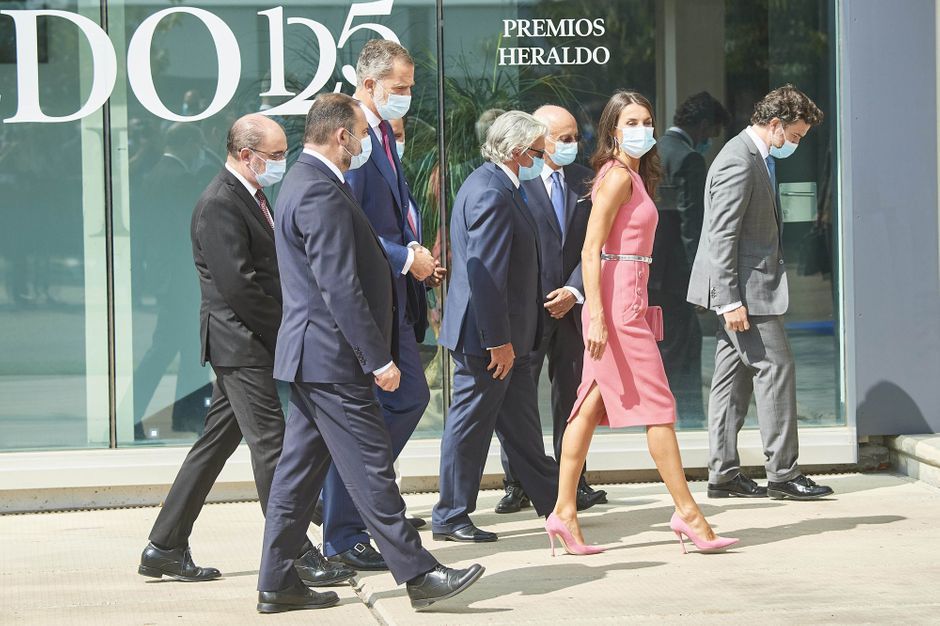 Letizia fête les 125 ans de Heraldo de Aragon en rose et argent